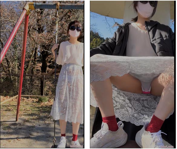 透け透け私服でブランコで遊ぶ