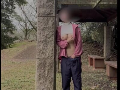 乳首見られるかドキドキしながら近所の公園を歩く
