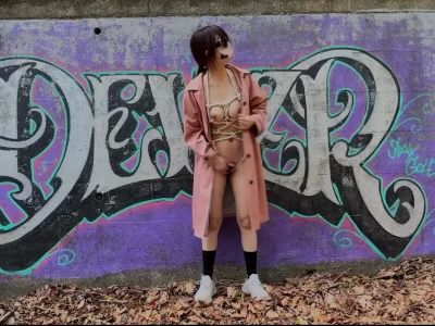 クリトリスをブルブル振動させて責めながら道路を歩く