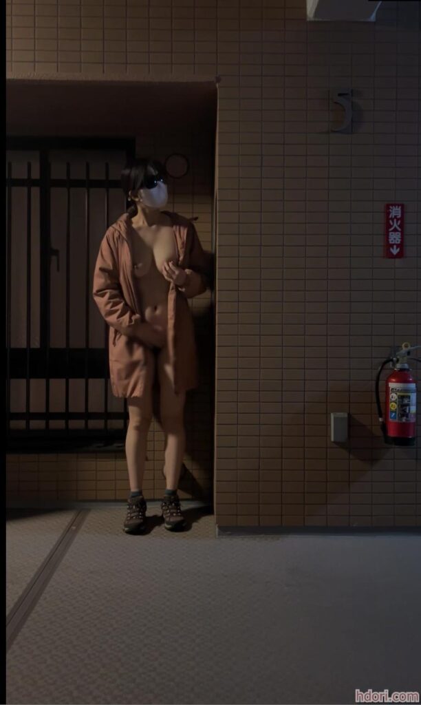 HOME > オナニー > オナニー 野外露出マンションの廊下で野外露出 スリルでおまんこビショビショ 2025年3月17日 シーンと寝静まっている真夜中のマンション全裸にコートを着た変態女が周りを警戒しながらキョロキョロしている人がいないことを確認したらチャックを下ろして全裸になり乳首とクリトリスをイジッてオナニーを始める急に近くで女の人の「キャー」という悲鳴が聞こえてビクッとして身構える見られてるかもしれないのでコートを来て移動する玄関の前に来てコートを脱ぎ立ちバックになりおまんこを両手で広げるまだ誰かいるかもしれないヒヤヒヤしたスリルの中おまんこをいじる3分43秒j1407 -オナニー, 野外露出