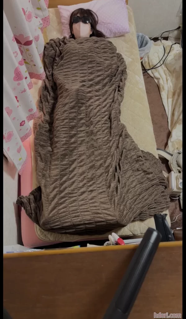 途中まで頭を出していてその後に全身毛布をかぶって股間がモゾモゾ動いている様子が分かるオナニー作品