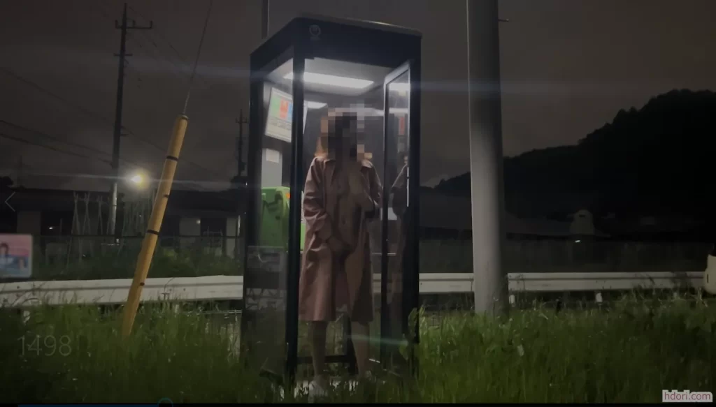 道路わきにある公衆電話の中に入ってドキドキしながらオナニー姿を撮影