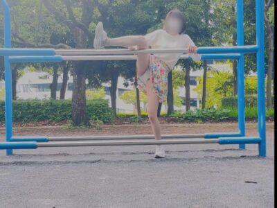 自撮り棒を跨ぎながら歩いてローアングル散歩